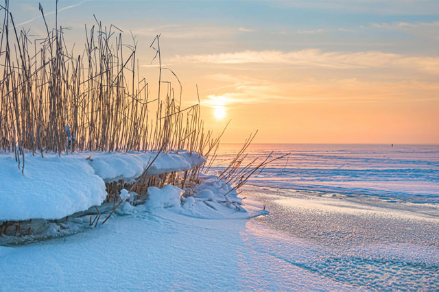 Das Meer bei Ebbe, eingepackt in Eis und Schnee, die Ruhe (vielleicht vor dem Sturm). Die See bietet im Winter Erholung pur. Hier werden Sie geerdet..